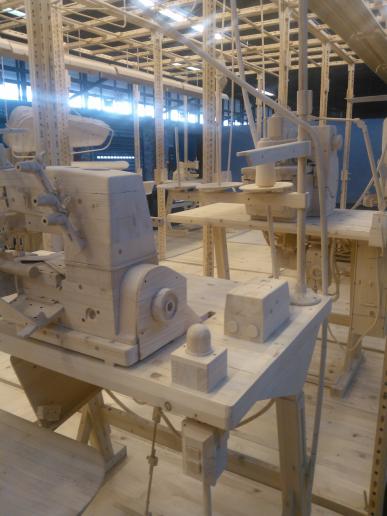Zentrales Motiv seiner ersten großen Einzelausstellung in Berlin ist der Wald. In der Installation "Forst" nehmen fünf über Kopf aufgehängte und sich langsam drehende Bäume die gesamte, zehn Meter hohe Ausstellungshalle ein.